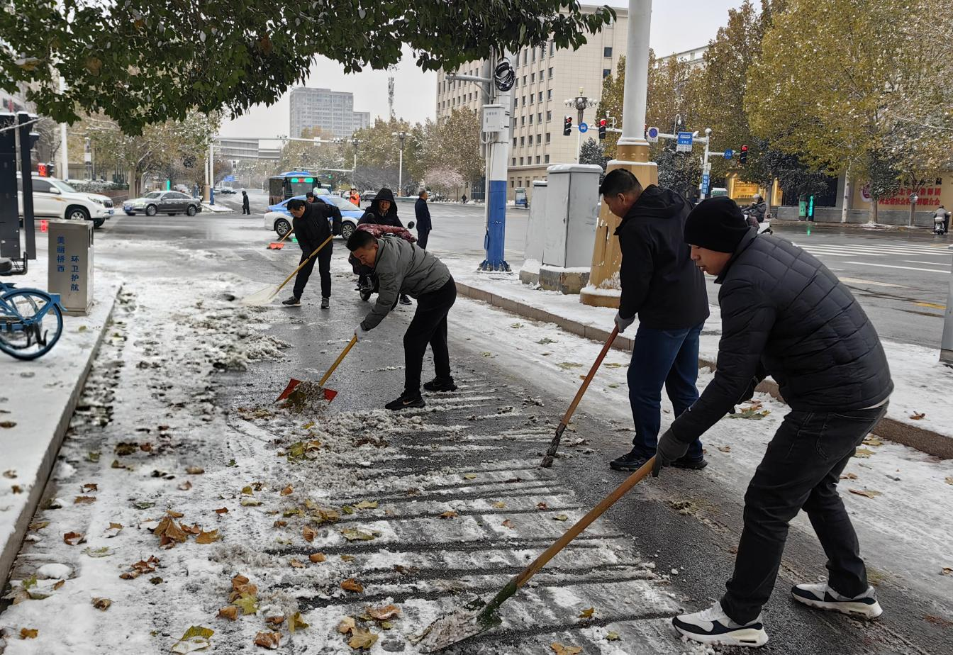 12月12日,石家庄市迎来降雪天气,为保证群众出行安全,省社科院组织院属各党支部党员干部,第一时间在裕华路责任路段开展清雪除冰志愿活动。