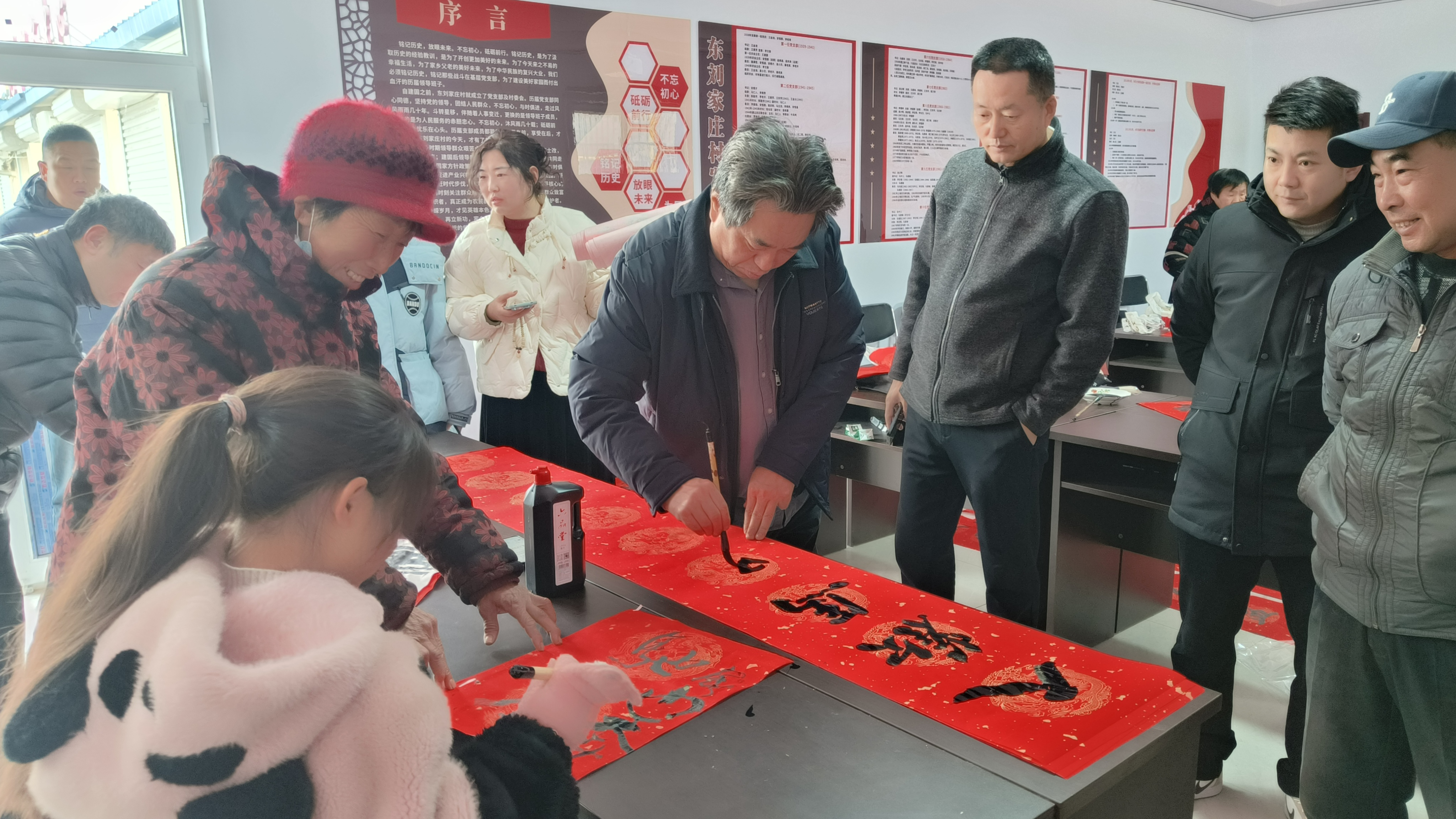 2月10日,省社科院驻东刘家庄村工作队组织开展以“书香墨韵迎马岁 福字春联贺丰年”为主题的书法公益活动。